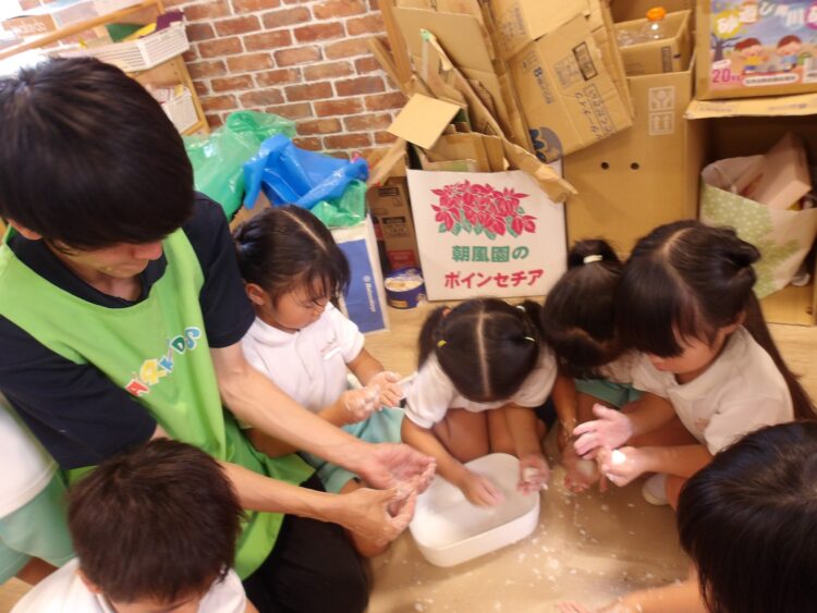 ネイチャーのお部屋では、片栗粉を使ったスライムをつくりました!