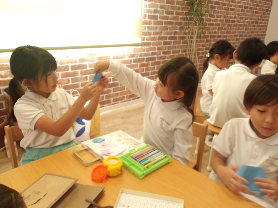 昨日覚えた折り紙を今日はたいよう組さんが先生になり、折り紙教室をしました✨