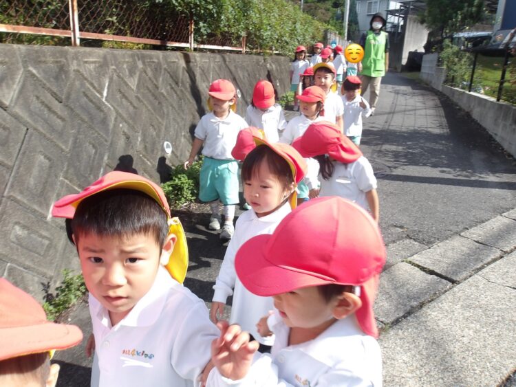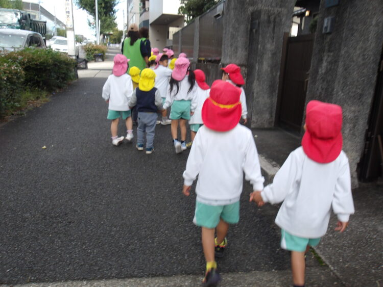 今日はうさぎ組、そら組、にじ組、たいよう組でお散歩に行きました!