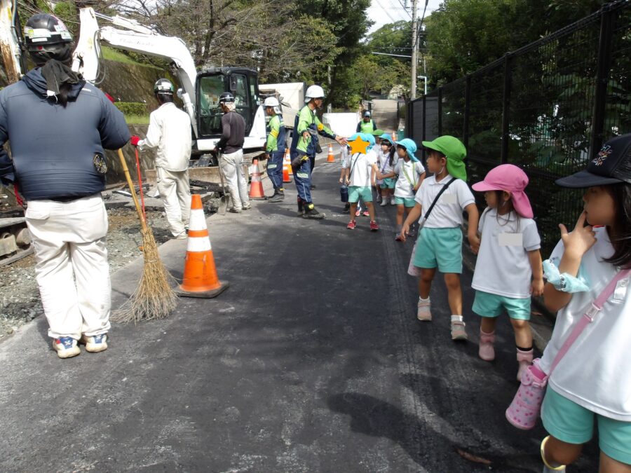 工事中の道を通ると、作業をする方々が手を振ってくれ、工事の機械やダンプカー、ショベルカーを間近で見ることができ、目線は釘付けでした👀