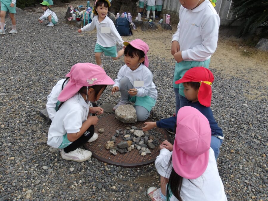 それぞれの好きな石をみんなで探して並べてみたり、