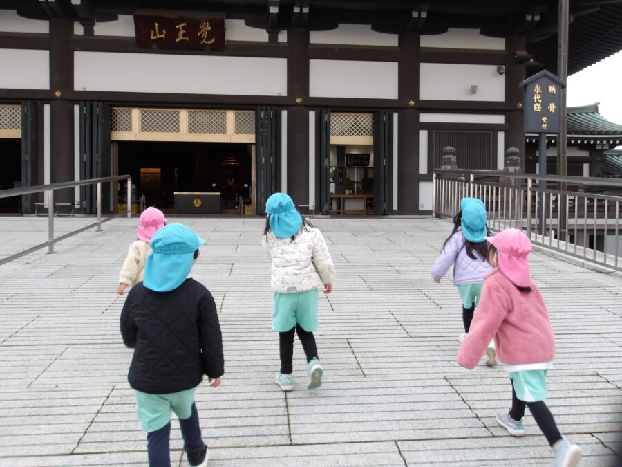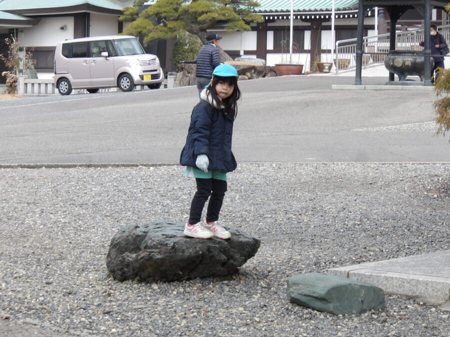日泰寺ではかめの中のメダカを探したり追いかけっこや石遊びを楽しんでいましたよ