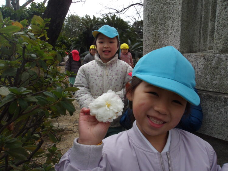どんぐり探しをしたり、綺麗に咲く花💐を見つけてうっとりしたり、鬼ごっこをしたりして遊びました!