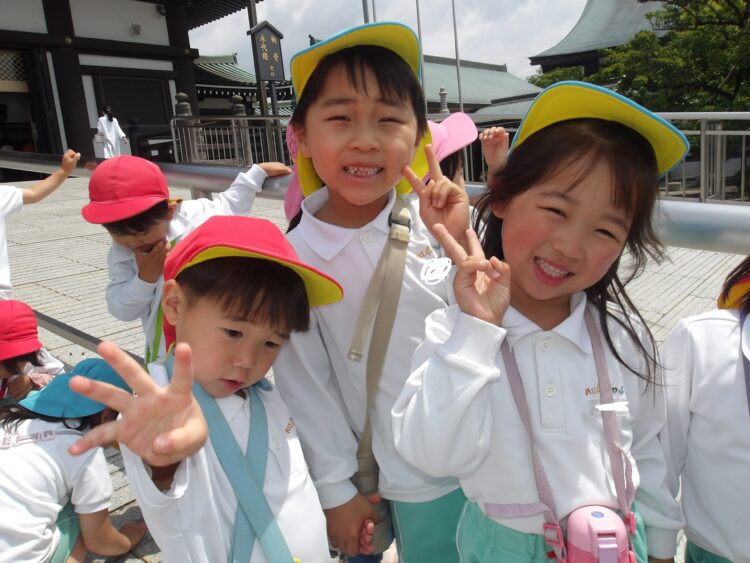五重塔に着くと、小さいクラスのお友達も来ていて会えたことが嬉しそうにしていました![]()