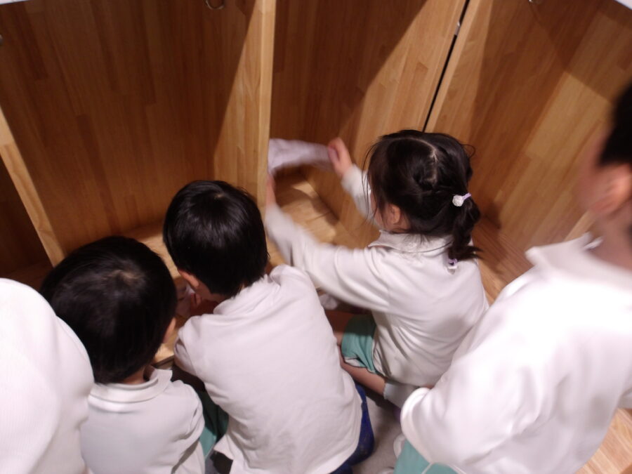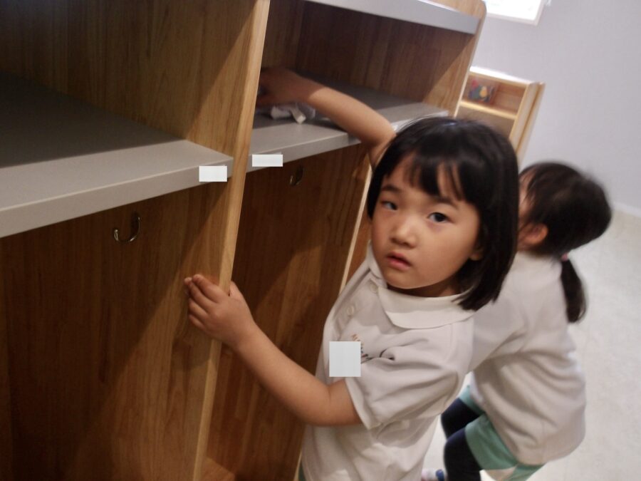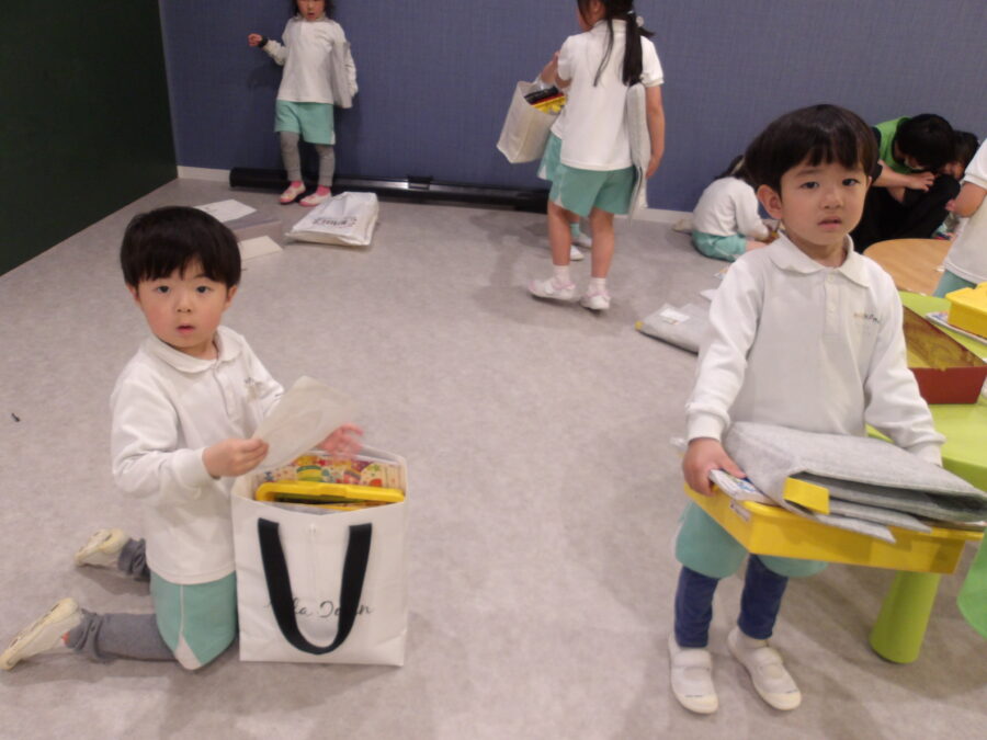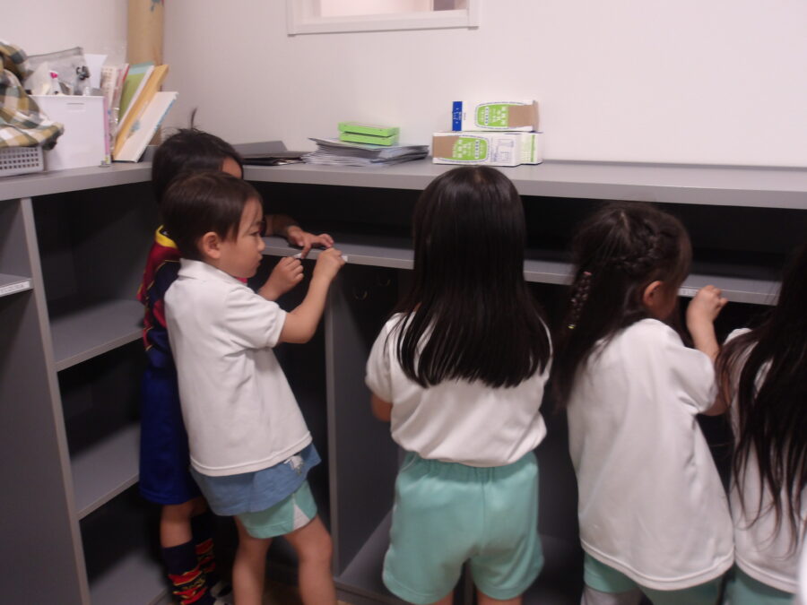 お掃除が終わると「すごい綺麗✨」「◯◯ちゃんは誰のロッカーかな〜」「〇〇くんのところは△△くんが使うのかな」「今日は荷物いっぱいだ〜」