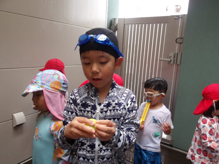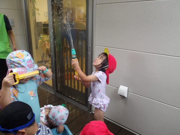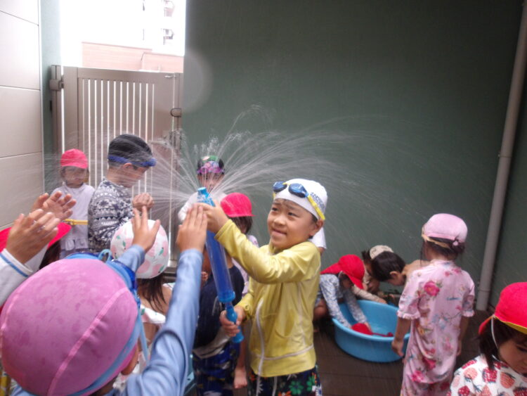 水遊びをしたよ! 今日はテラスで水遊びをしました! フラワーアートで残った花を水に浮かべて遊んだり、水鉄砲やジョウロなどで遊んだりしました プールには入れませんでしたが、水遊びを時間いっぱい楽しんだみんなでした✨ カテゴリ: 覚王山(2~3歳), 覚王山(4~5歳) タグ: