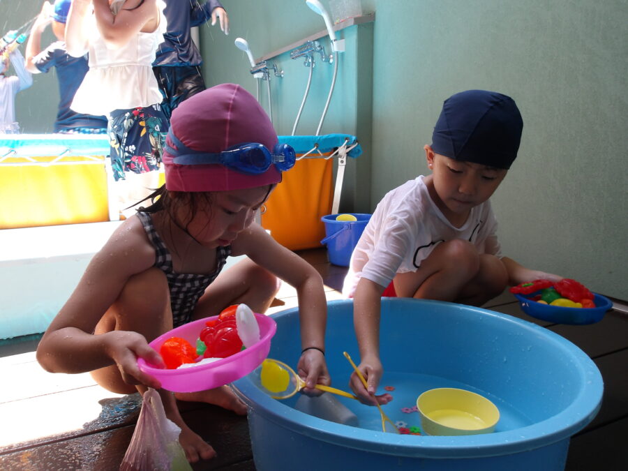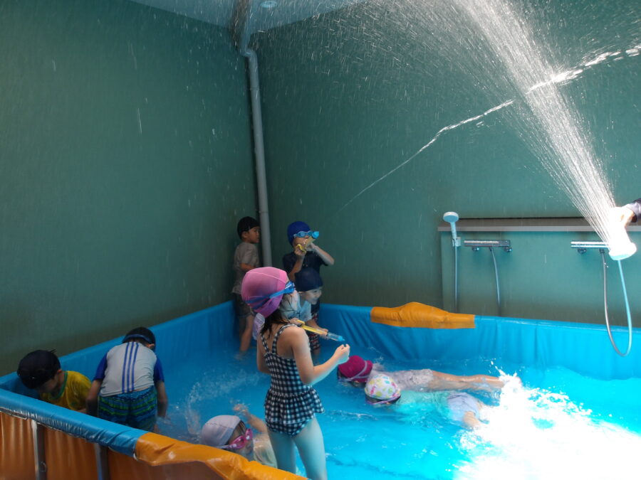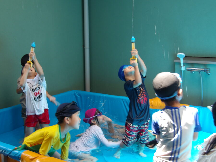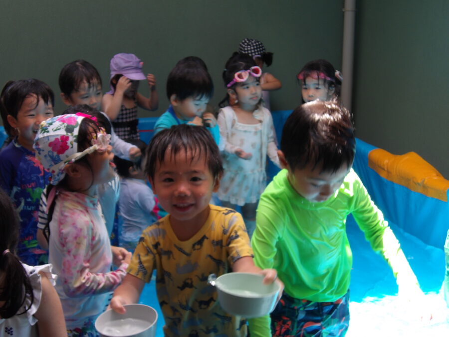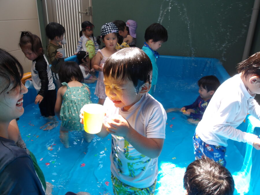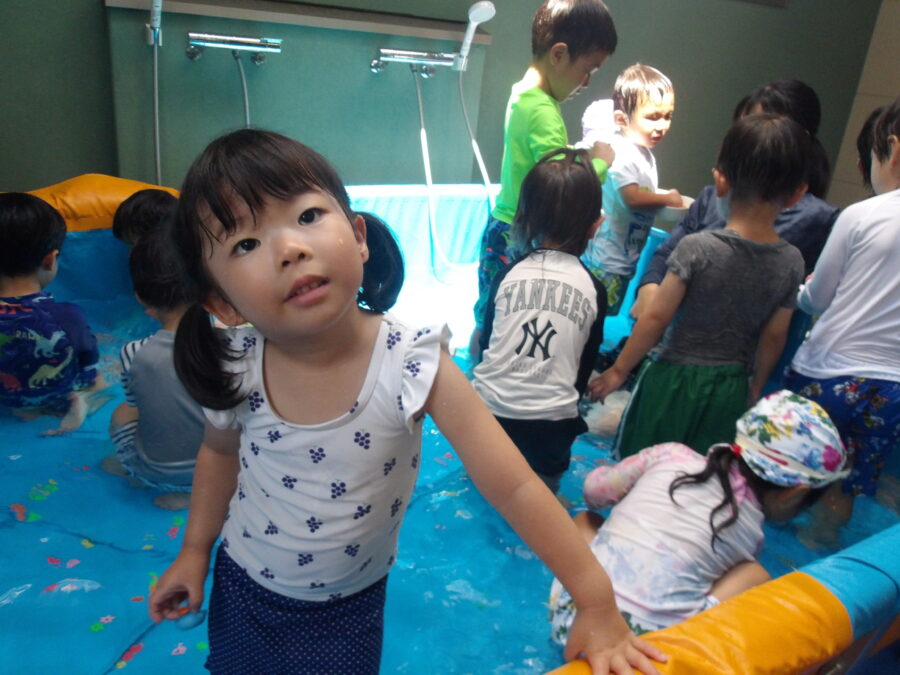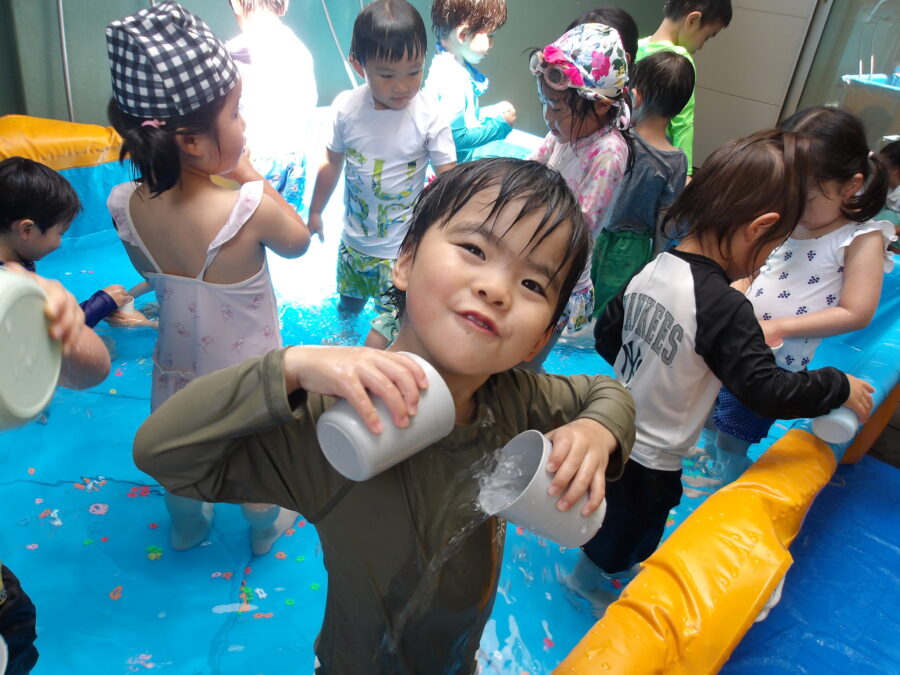 水遊びに慣れてきた子どもたちは、より活発に水に触れていましたよ![]()