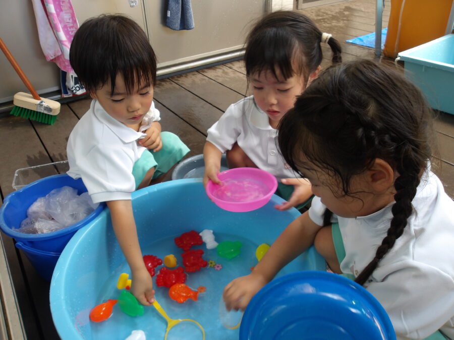 新しく金魚すくいのおもちゃが増えたので、今日はそれも使って