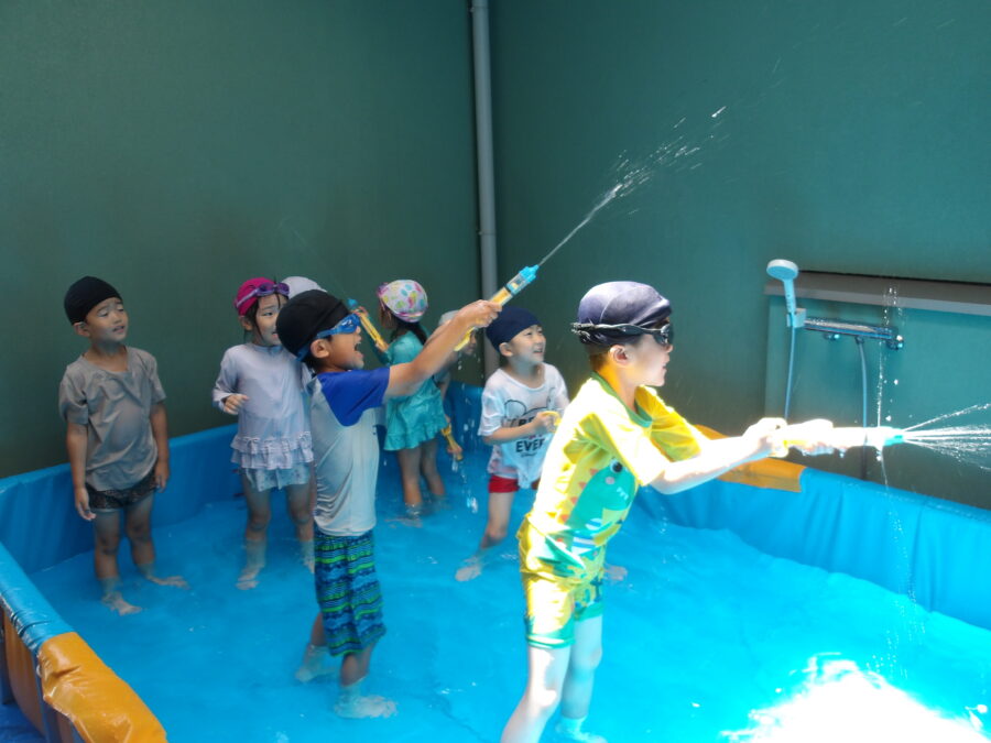 そら組さんとたいよう組さんで水遊びをしました![]()
