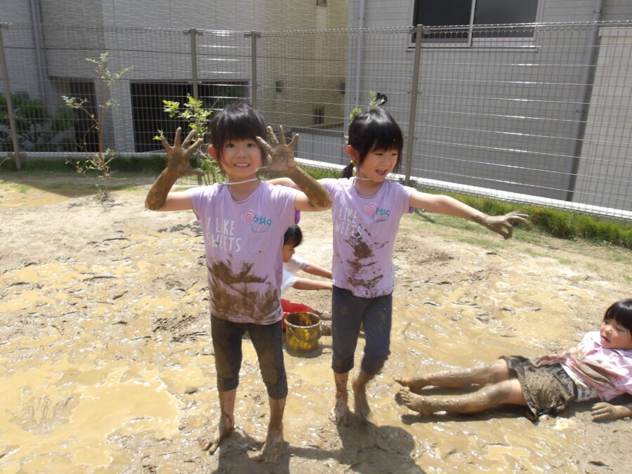 水の気持ちよさを感じながら手や足、全身でたくさん泥を感じて満喫していましたよ![]()