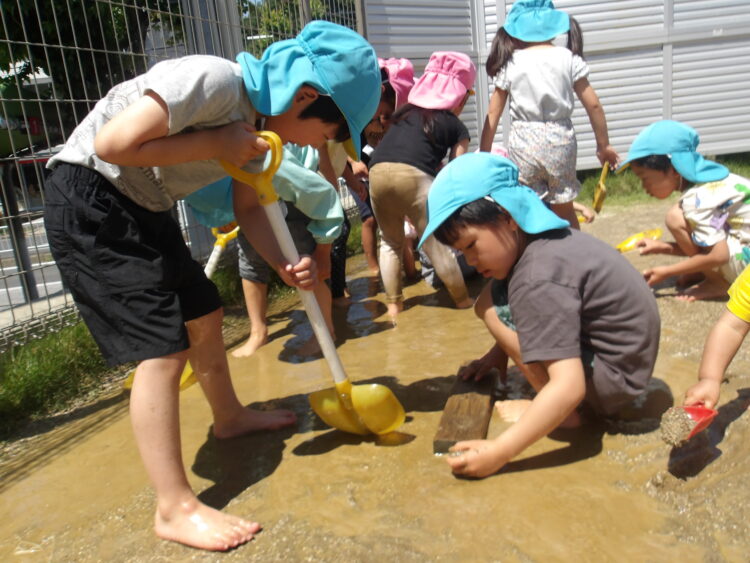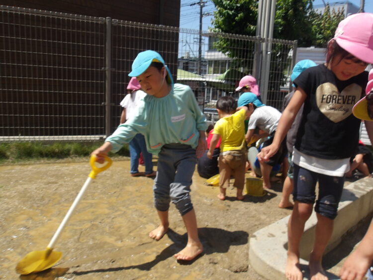 友だちや先生と泥の塗り合いをして感触を味わったり、泥で何かを作ったり、それぞれ好きな泥遊びを楽しみました✨