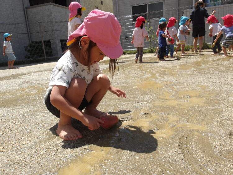 いい天気の日にやった泥遊び、冷たい泥が気持ちよかったようでとても喜んでいましたよ☺️
