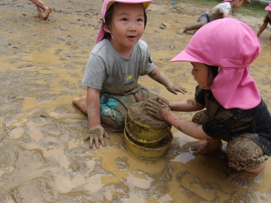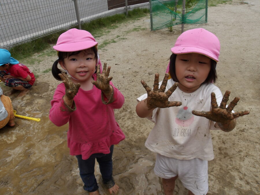 「今日は冷たいね〜」と気持ちよさそうにたくさん泥を触っていましたよ