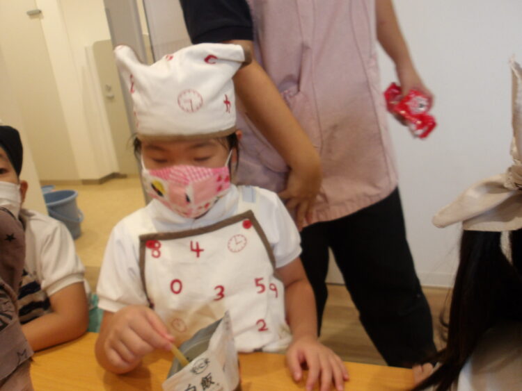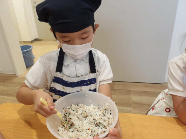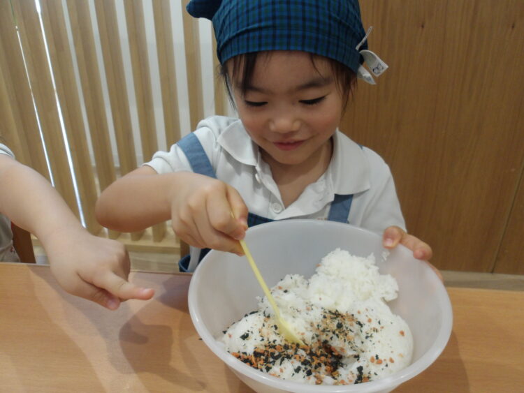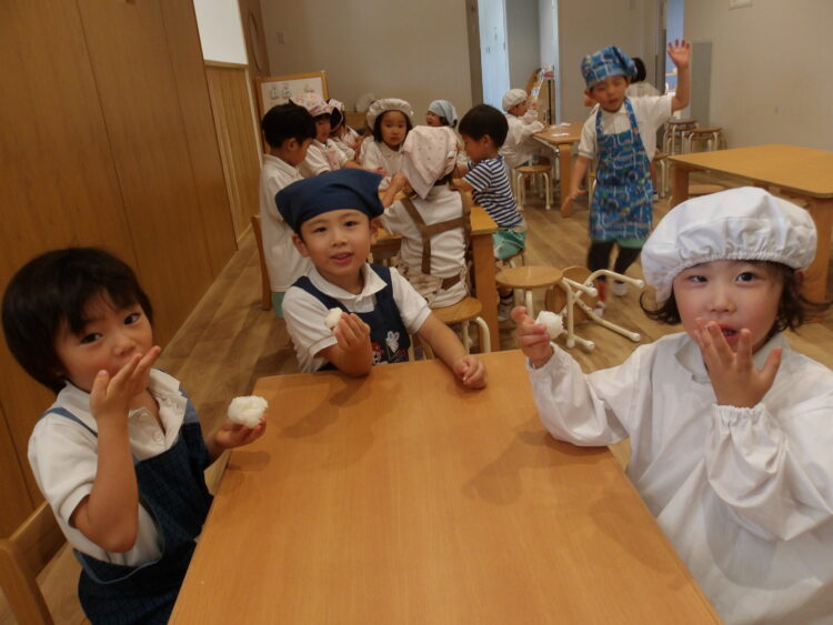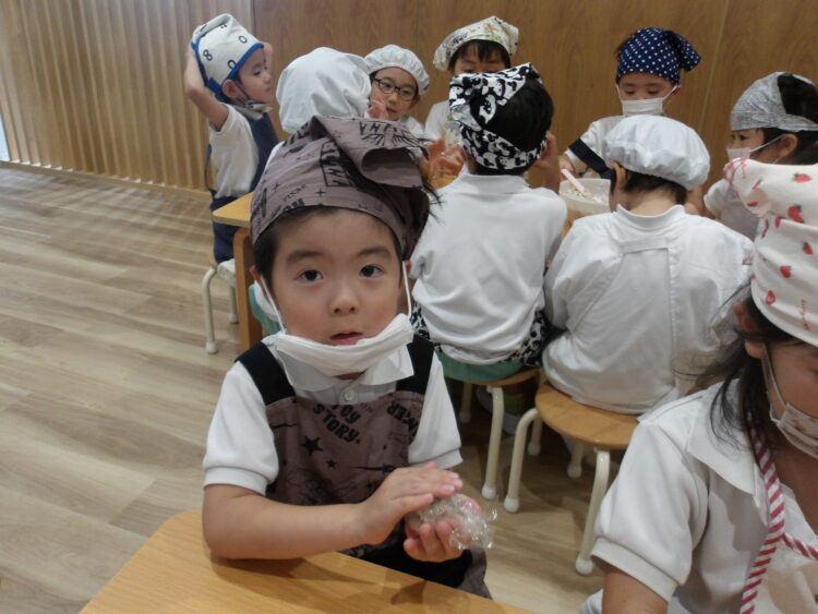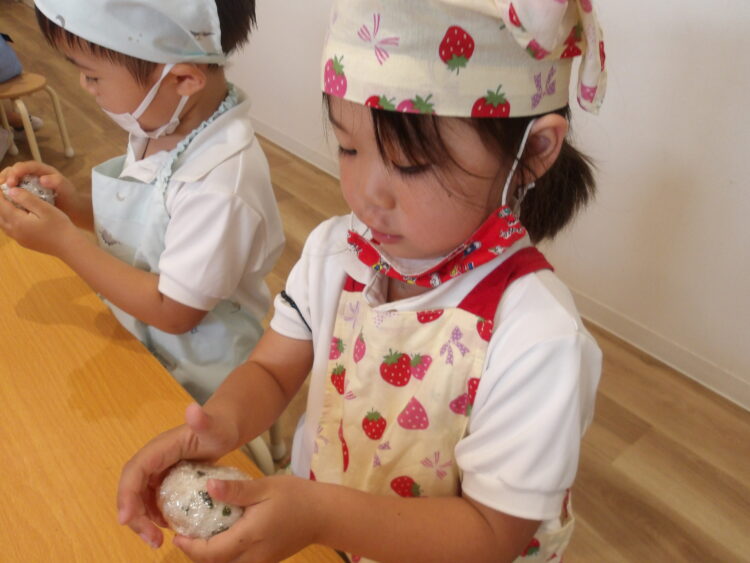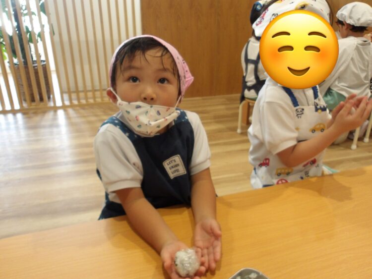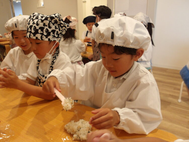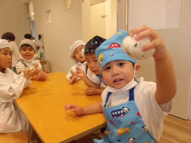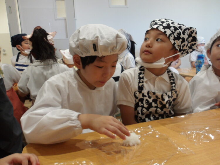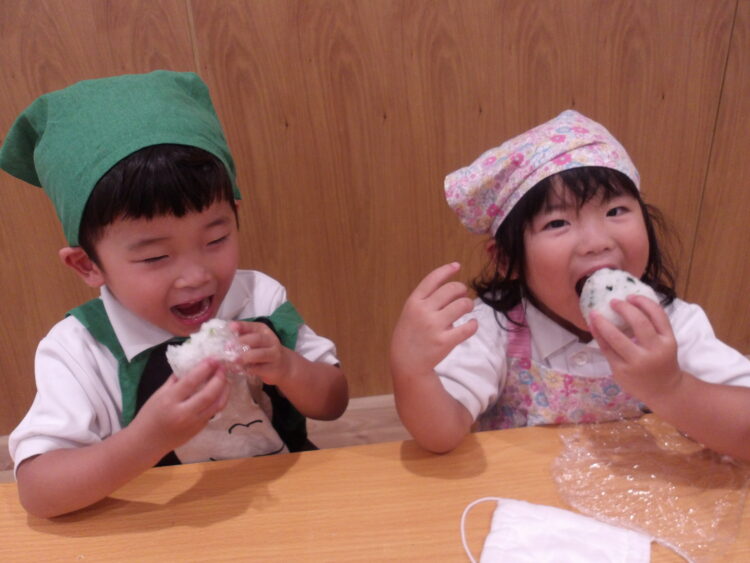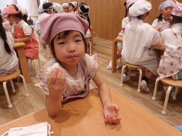 自分でつくったおにぎりを「おいしい!」と言いながら食べていたみんなでした!