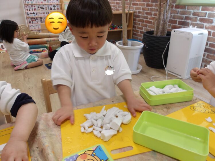 はじめての粘土あそびだったので、準備の仕方から片付けまでを