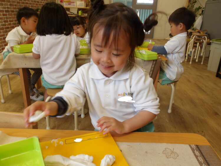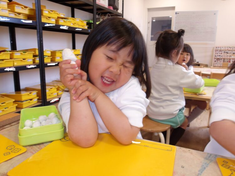 ぎゅっと粘土を握ったり、転がしたり、粘土をいろんな形にして楽しむ