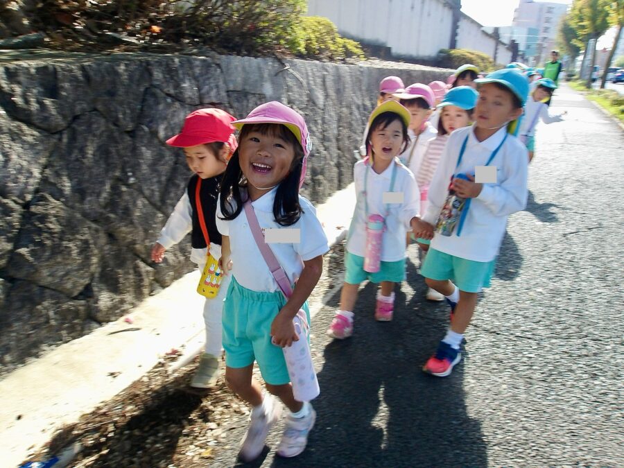 本日はうさぎ、そら、にじ、たいようの4クラスで散歩に行きました