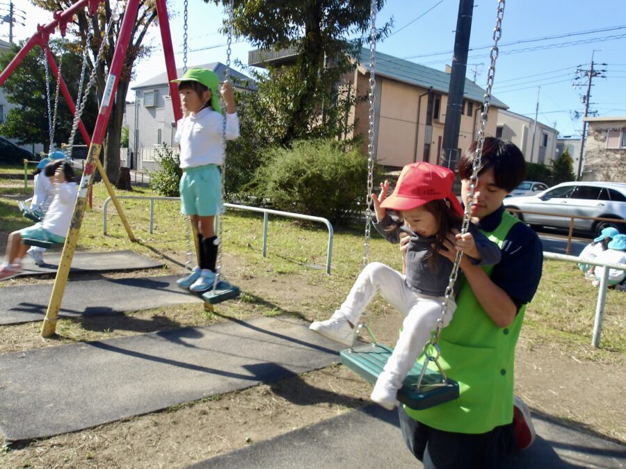 うさぎ組さんが大きなブランコに乗りたいと挑戦する姿もありました