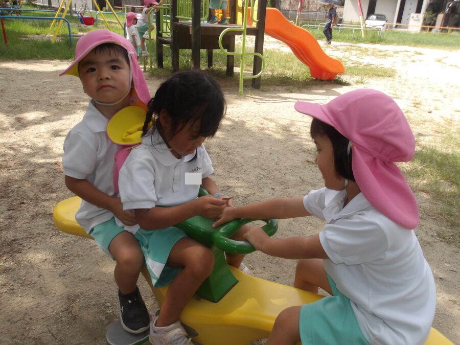 「今日も回るやつやりたい!」とリクエストがあり、乗り物に変身したジャングルジム![]()