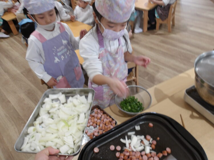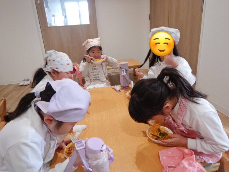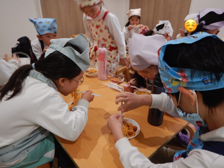 今日はクッキングでナポリタンを作りました♪
