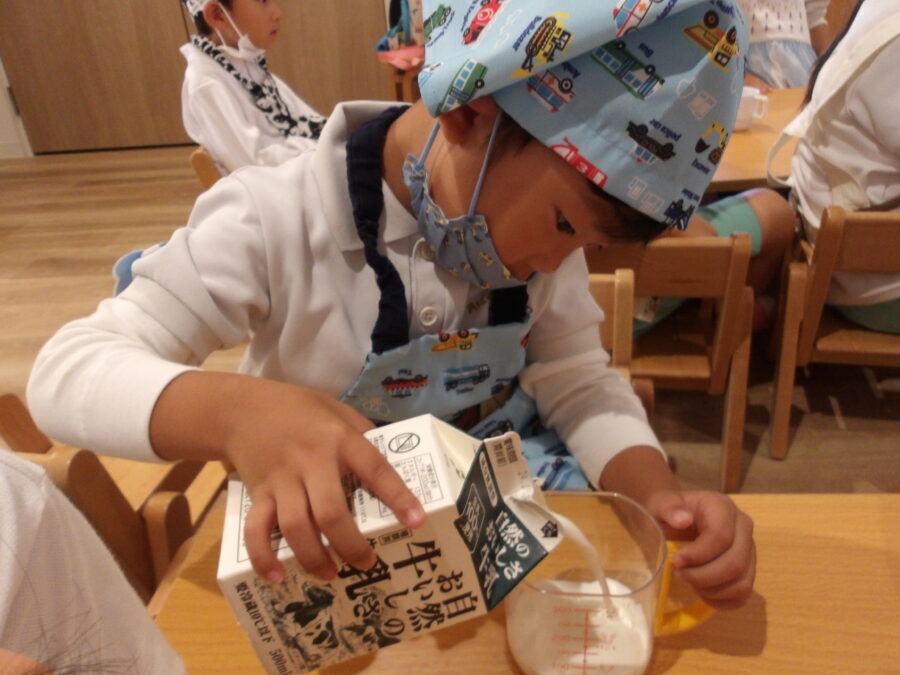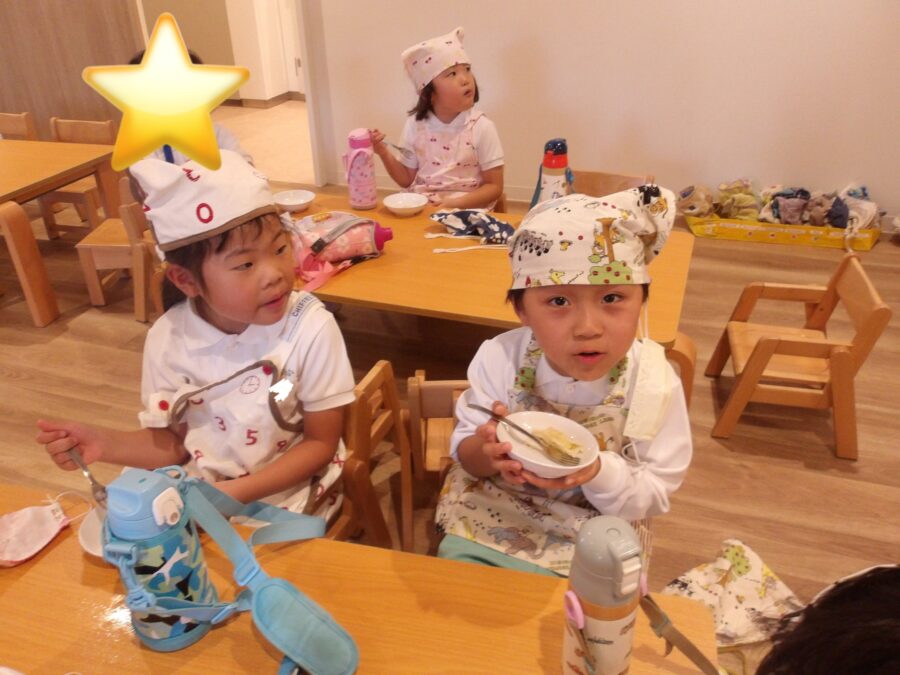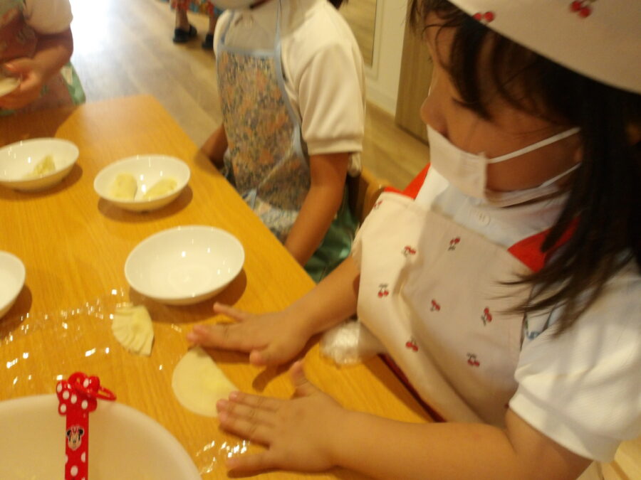 今日はさつまいもと餃子の皮、砂糖、牛乳を使ってクッキングをしました🧑🍳
