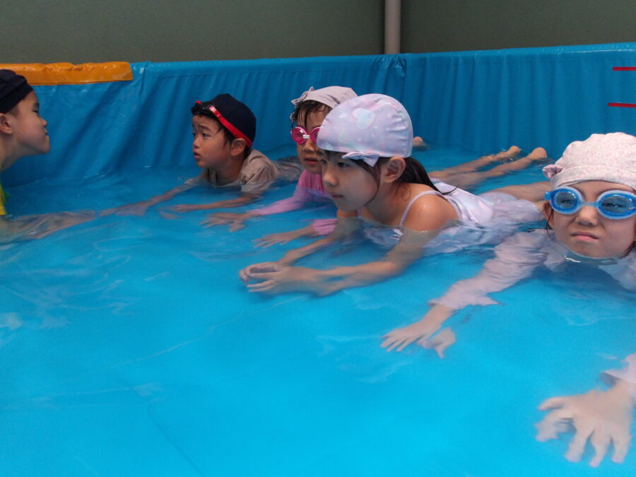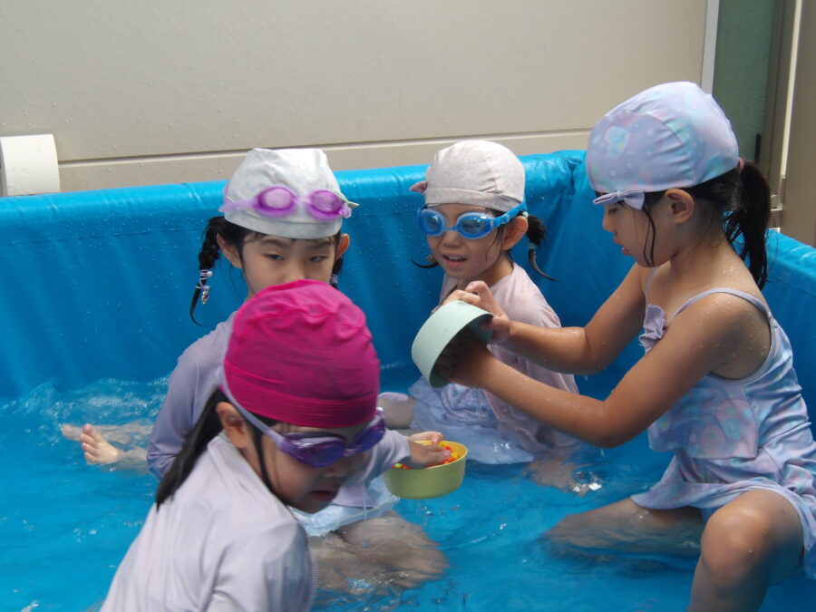 プール遊びをしました たいよう組のみんなでプール遊びをしました ワニさんのように低くなったり、おもちゃで遊んだり、 いろんな遊びに挑戦していた子どもたち。 今日もとっても楽しんでいました カテゴリ: 覚王山(4~5歳) タグ: