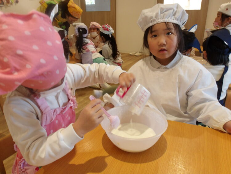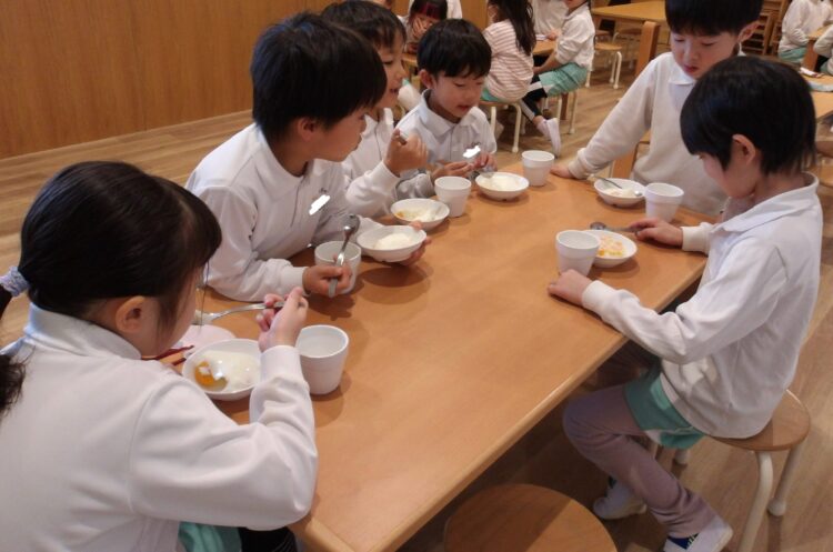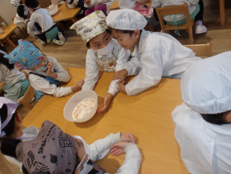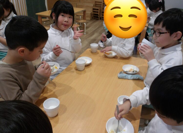 今年最初のクッキング🎶 たいようぐみさんのみんなでクッキングをしました! 今日作ったのは、牛乳プリンです 牛乳とみかんに温めたゼラチンを入れたら冷蔵庫へ! 楽しく作ることができました カテゴリ: 覚王山(4~5歳) タグ:
