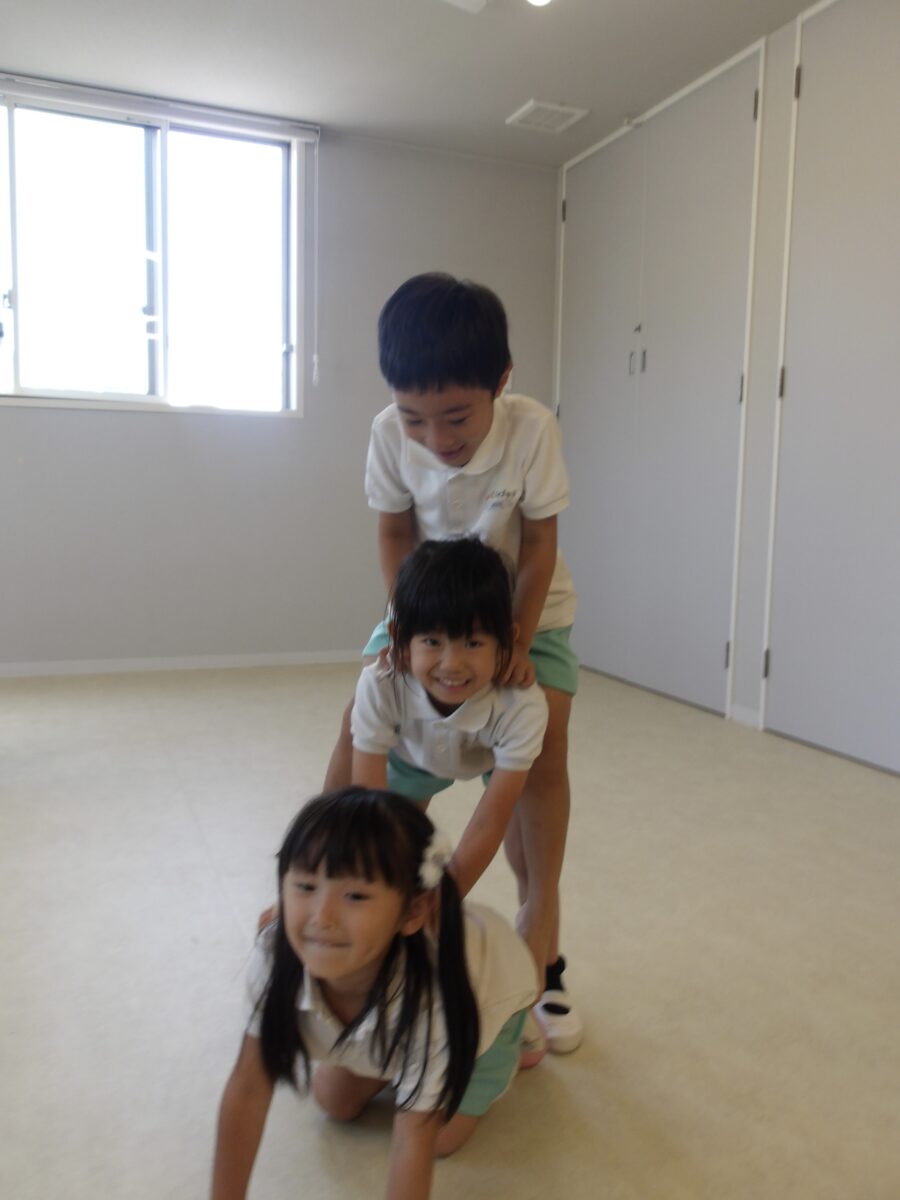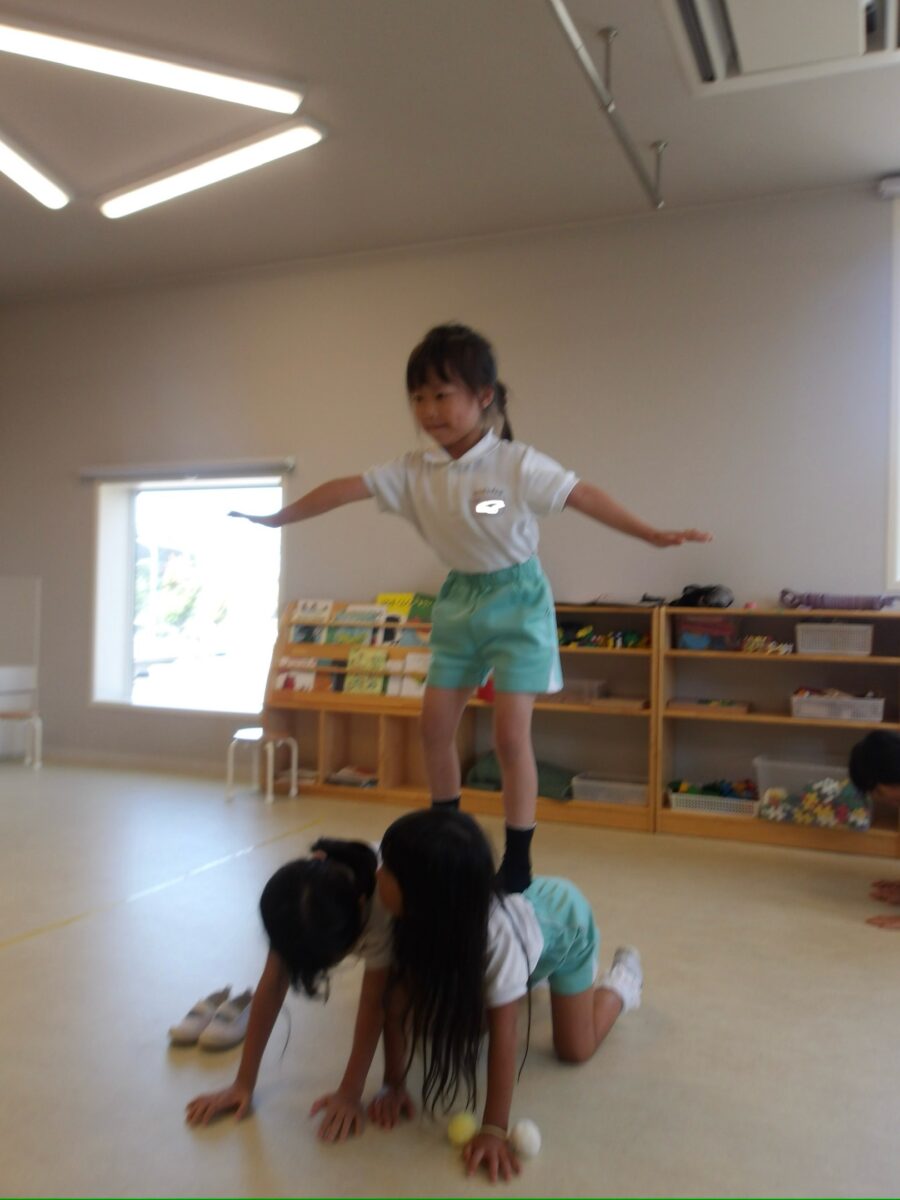 いつもと違い器械は使わずにお友達の上に立ったり、トーテムポールを作ったりしました✨