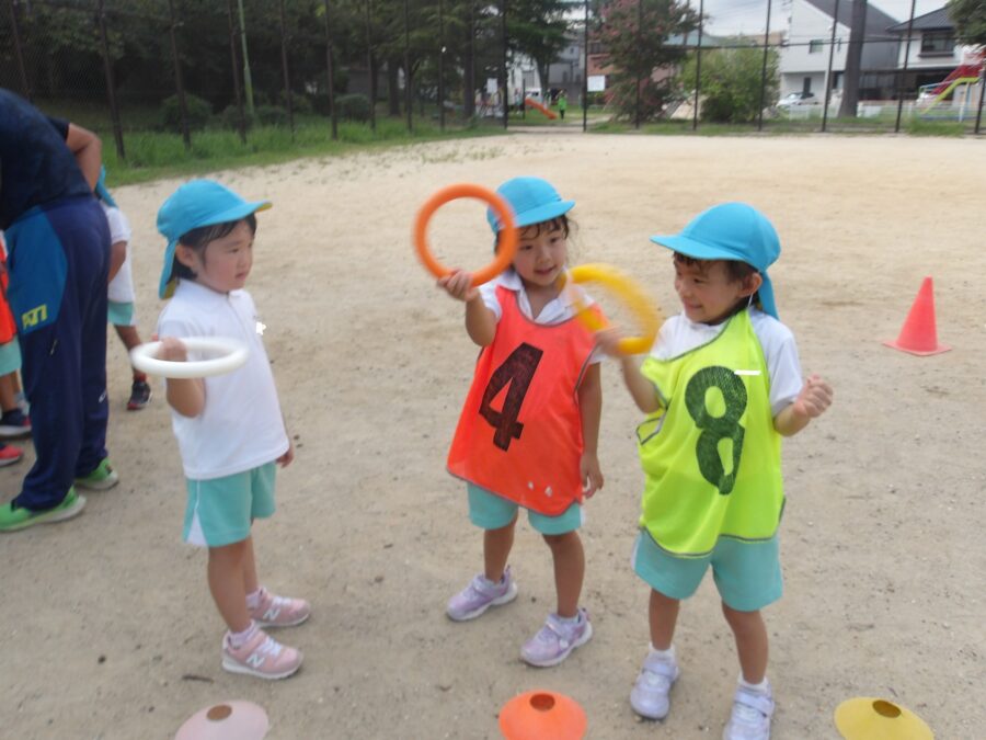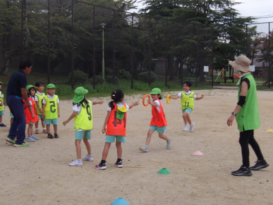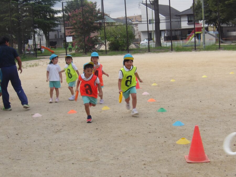 リレー大好きのにじ組、たいよう組は、やる気満々の様子でした!