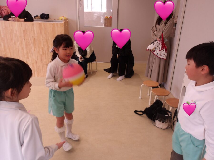 3人組でボールパス!お友達がキャッチしやすいように優しく投げてあげる姿もありました☺️