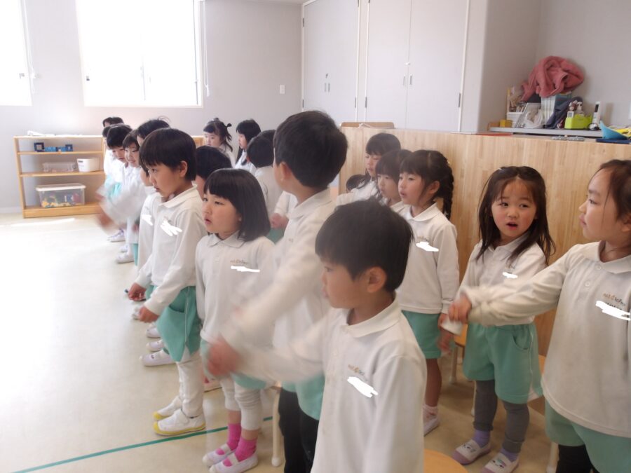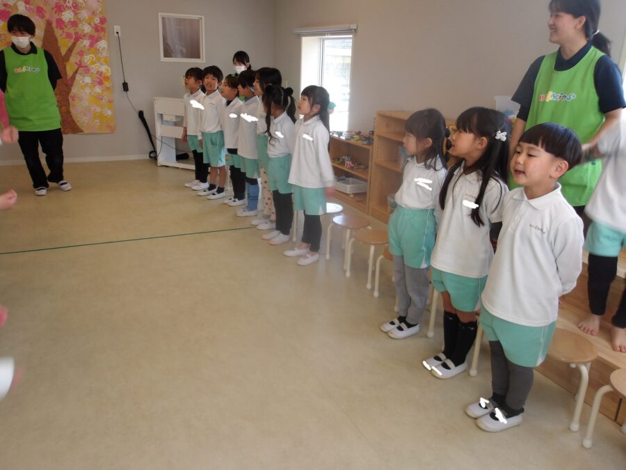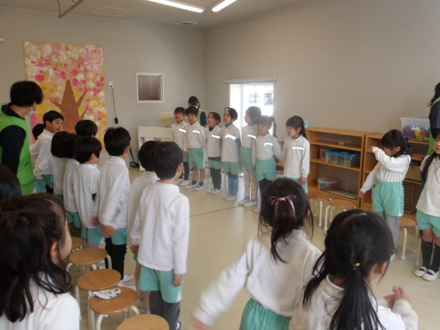 今日はたいよう組さんとにじ組さんで卒園式の練習をしました。