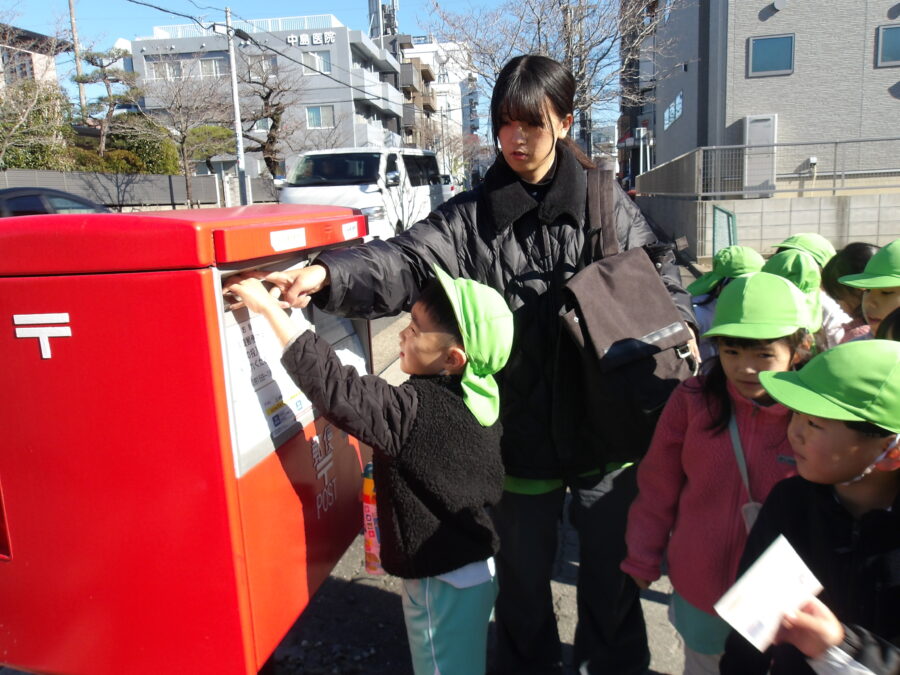 帰り道にはみんなで書いた年賀状を投函しました