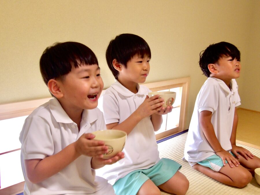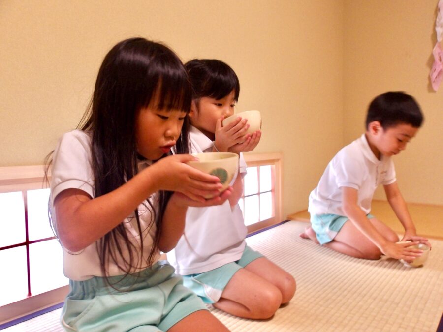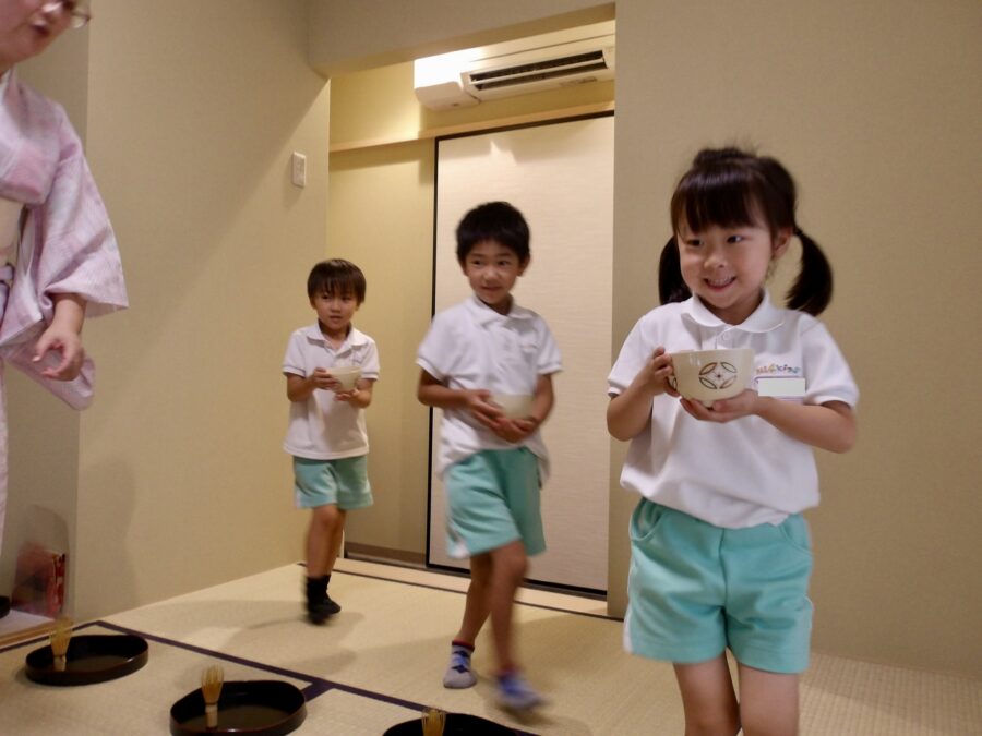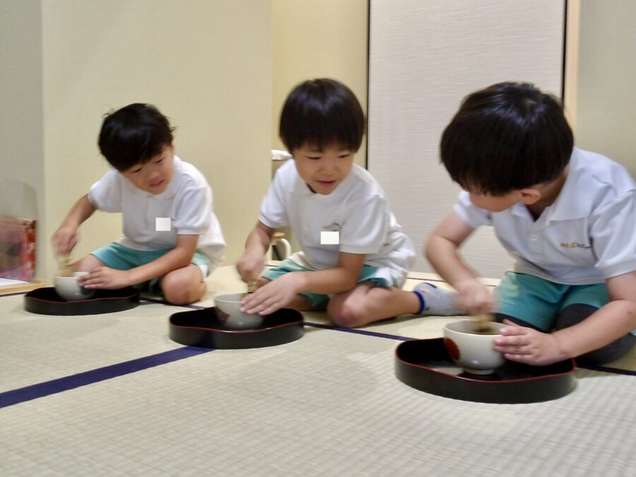 「泡がなかなかできないっ」と真剣な表情で茶筅を夢中で動かしていました