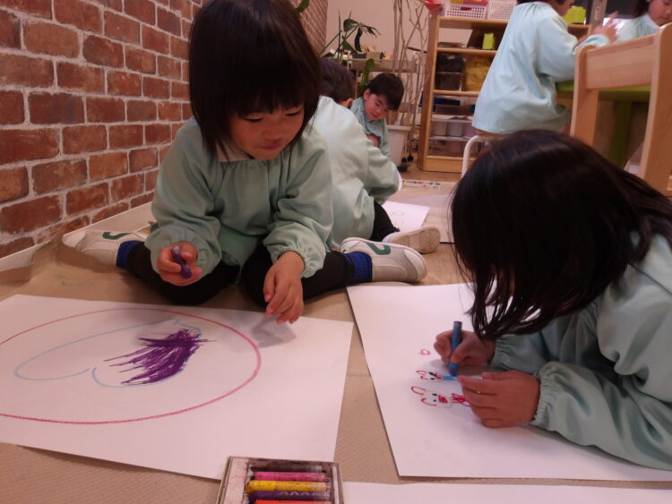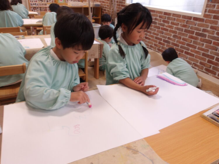 みんな名画伯🖌️ 今日は大きな画用紙に自由に絵を描きました! 迷いなくクレヨンを持ち🖍️想像力を膨らませ素敵な作品を作っていました! どの子も素敵な絵でびっくりしました😳 これからの作品も楽しみです😊 カテゴリ: 覚王山(4~5歳) タグ: