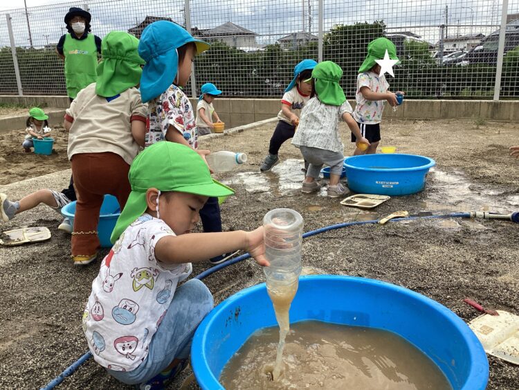 今日は幼児園庭で遊びましたやっぱりお水が大好きな子どもたち