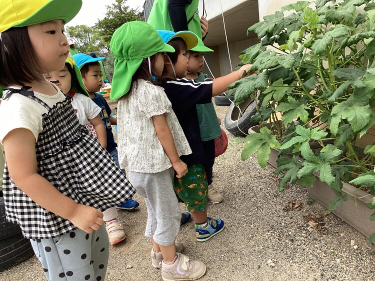 お兄さんたちが育てている野菜に興味津々