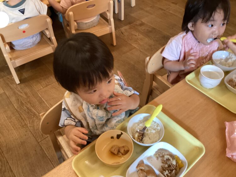 すくすくさんは自分で食べられる子が増えてきました