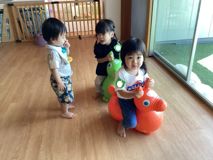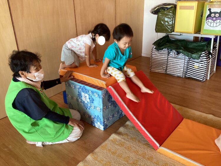 室内では滑り台やロディに乗って楽しんでいるお友だちもいましたよ![]()