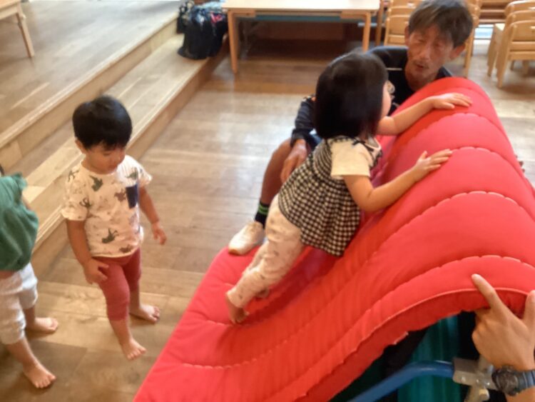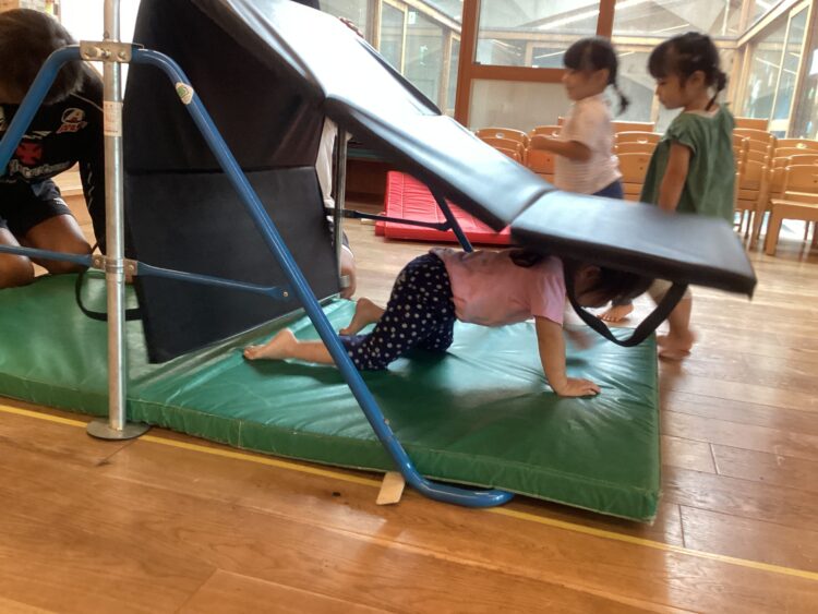 マットの山を登ったり潜ったり![]()