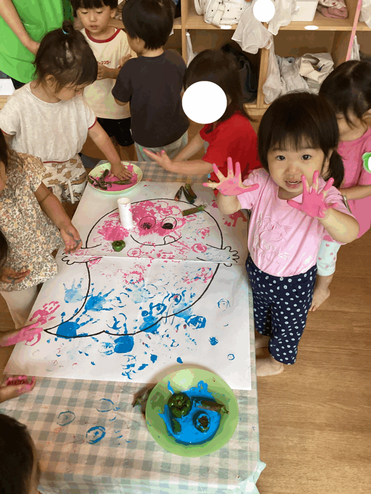 ばけたくんを野菜スタンプや手を使ってペイントしたよ👻✨