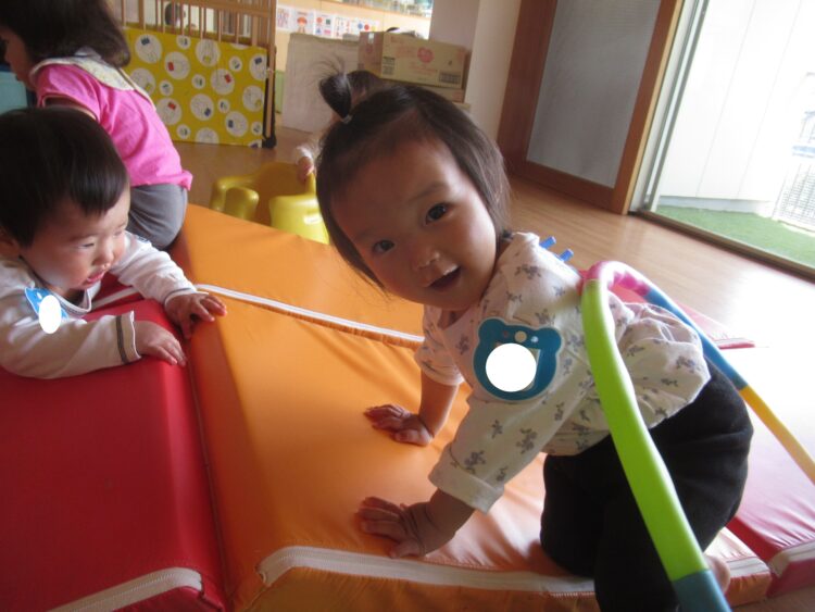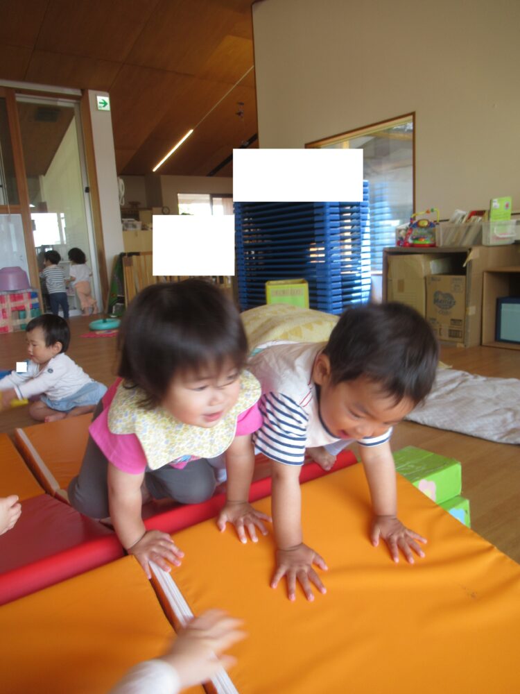 まずは室内のお友だちくぐったり、のぼったり楽しそうですね