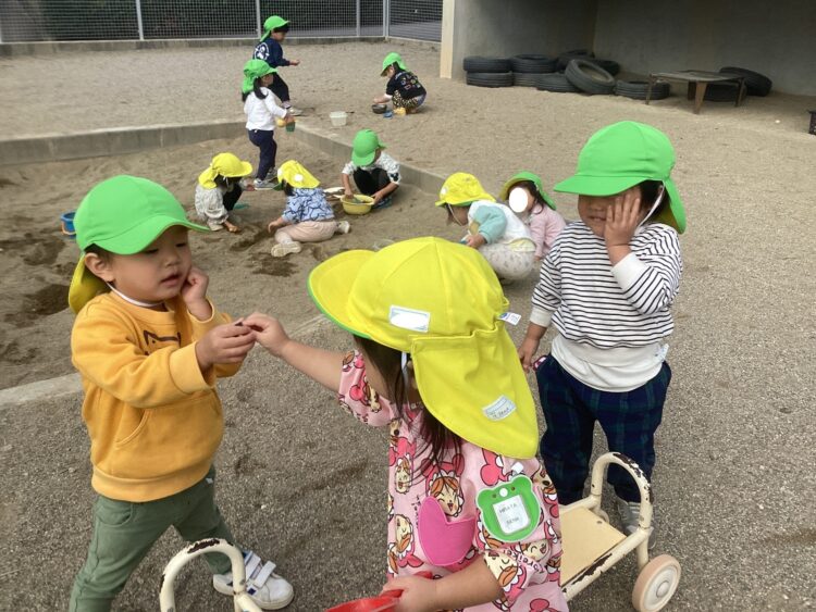 今日は暑いくらいの日差しでしたが、園庭でたくさん遊びました![]()