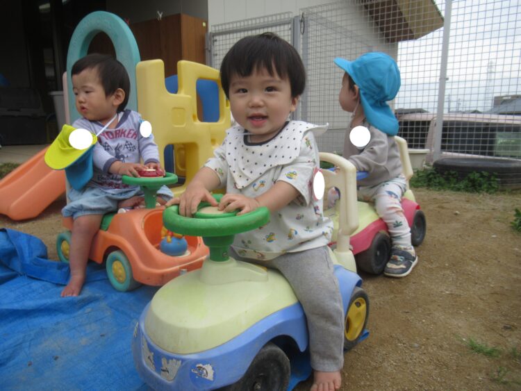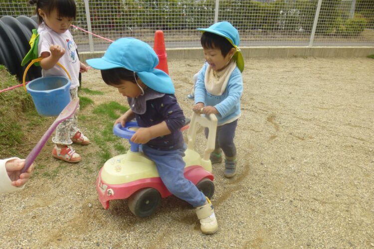 幼児園庭でもドライブしているお友だちがいましたよ!
