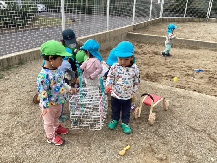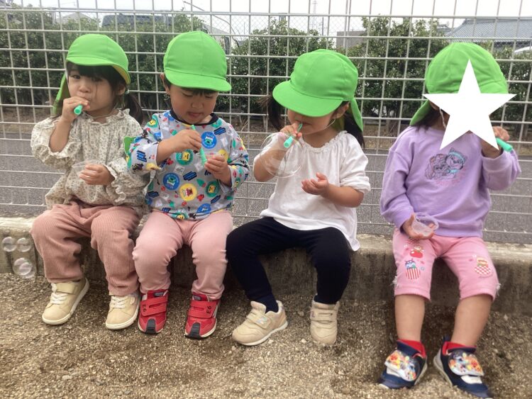 大好きなしゃぼん玉をみつけたのびのびさんは お友だちと並んで上手にしゃぼん玉を吹いていましたよ![]()