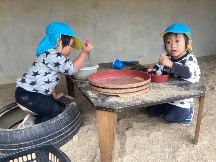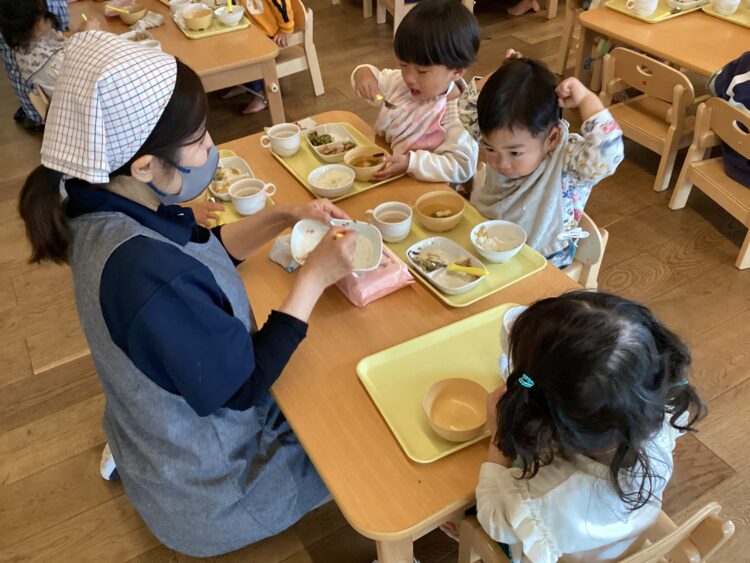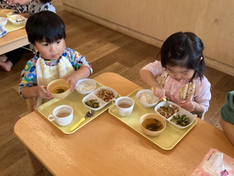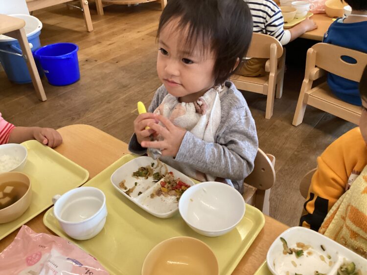 さあ お外でたくさん遊んだ後は、お給食です![]()