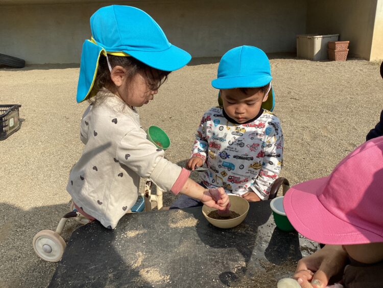 園庭では砂場に夢中