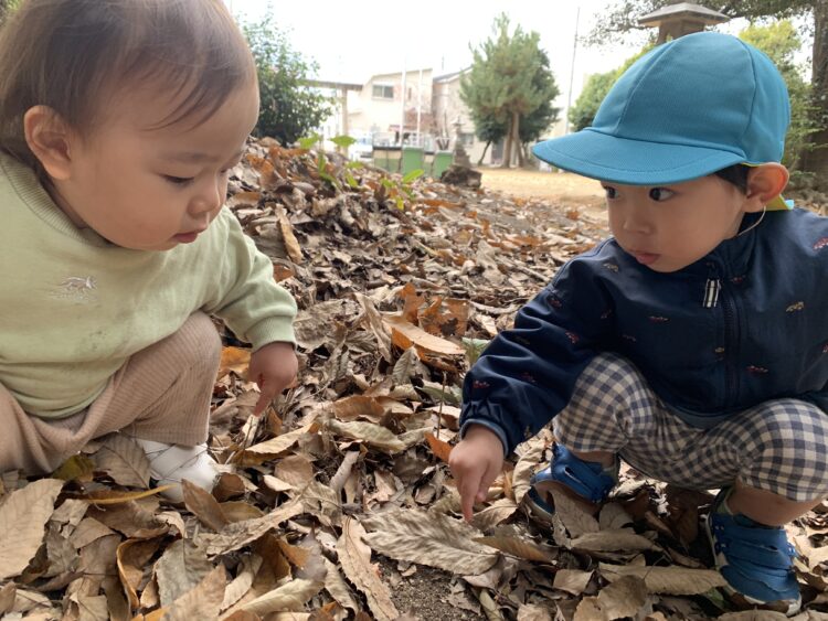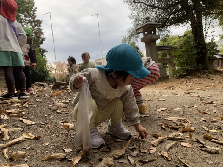 今日は神社にどんぐり拾いに行きました!