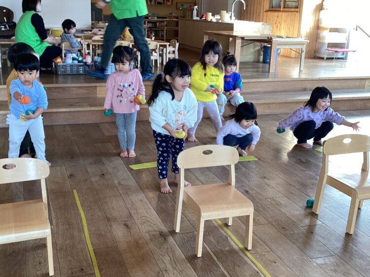 今日ののびのびさんの体操遊びではお手玉を使って遊びました!