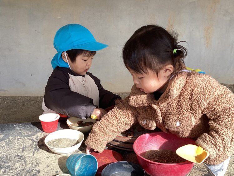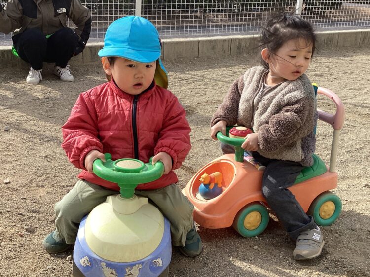 園庭チームさんも大好きな手遊びをして、コンビカーに乗ったりお砂遊びを楽しみました![]()