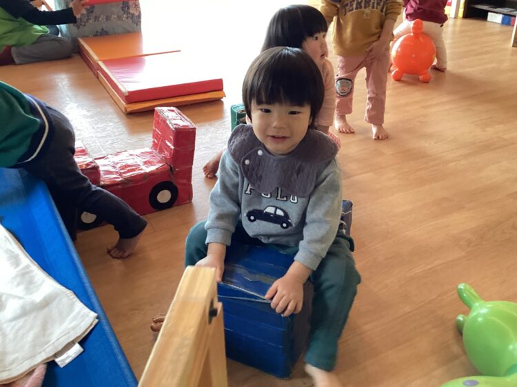 お部屋ではジャングルジムや手押し車などを使って体を動かして遊んだり、